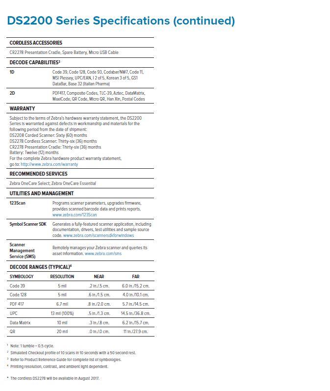 The Zebra scanner comes with a manufacturer’s 1-year warranty.